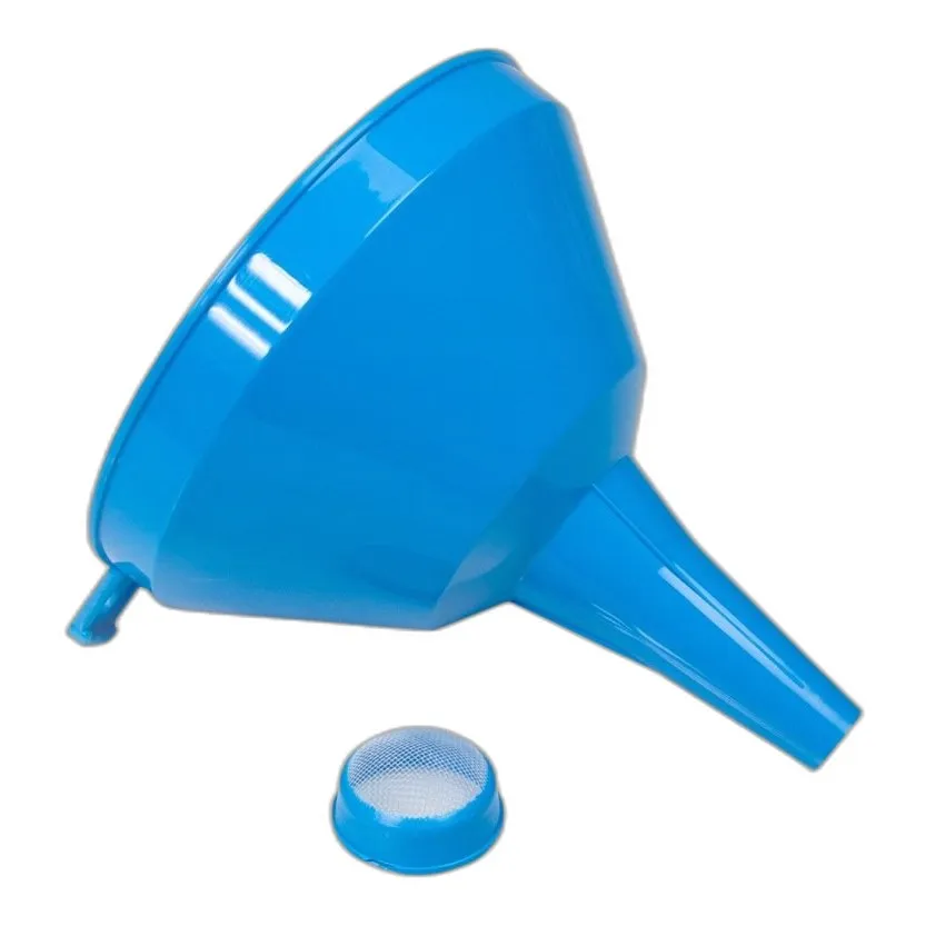 Lejek wykonany z polipropylenowego tworzywa sztucznego. Średnica górna: 16 cm. Materiał: PP, CAS 9003-07-0. Postać: stożkowa z sitkiem. Czystość: 99,8%. Odporność chemiczna: wysoka. Sitko z gęstej siatki – zatrzymuje drobne cząstki.